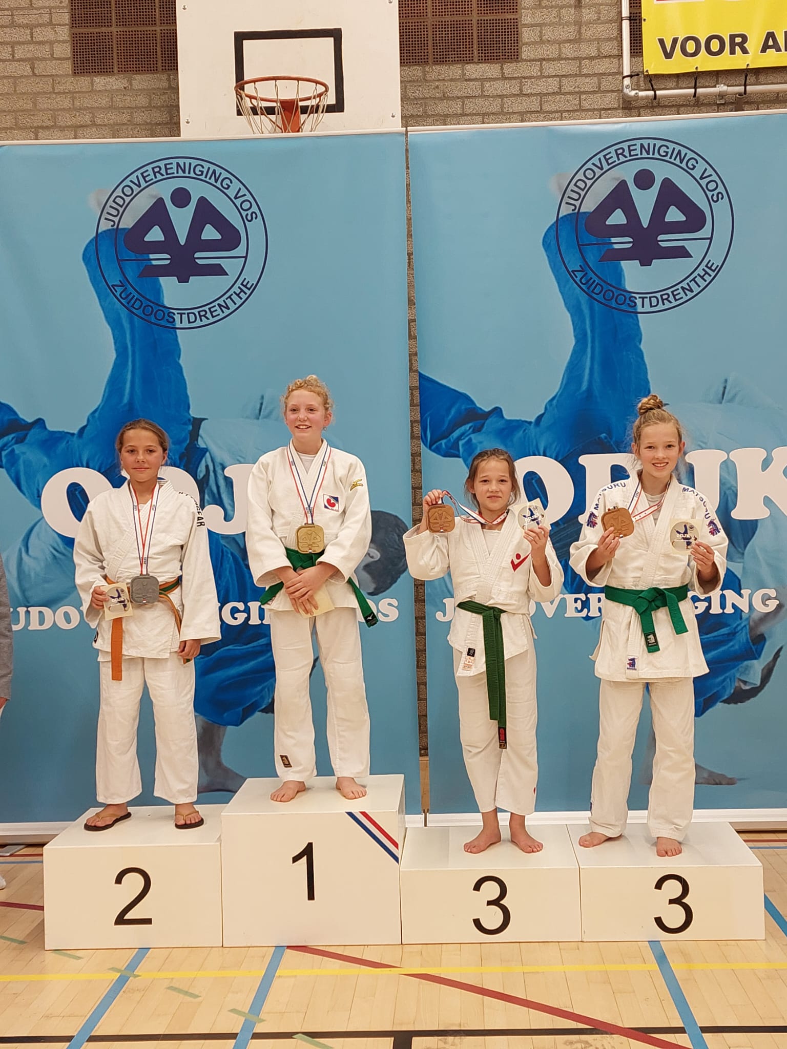 Zaterdag werd in Dronten het Open Flevo International Tournament gehouden. Vier jeugdige judo talenten van vereniging Vos hadden zich ook ingeschreven voor deelname aan dit sterke toernooi. Dit was tevens ook het laatste toernooi van het seizoen en ook nog heel succesvol. Bij de meisjes was Sofie Boon heel goed bezig en werd eerste. Lorena Schrik en Klea Cani behaalden beiden een uitstekende tweede prijs in hun klasse. Rick Jonker presteerde bij de jongens prima. De judoka uit Klazienaveen moest zes wedstrijden maken. Vijf hiervan werden met een vol punt beslist. De laatste wedstrijd met een grote voorsprong, en nog drie seconden op de klok , werd ver buiten de wedstrijdmat een ippon gemaakt door zijn tegenstander. Rick dus een hele goede tweede plaats.